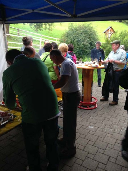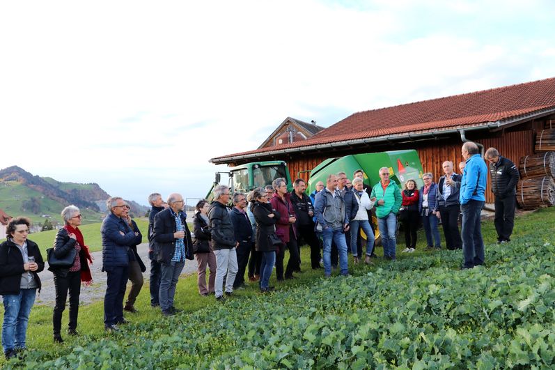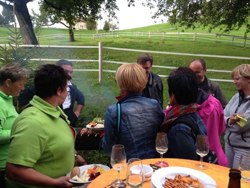 Nach einem kurzen Spaziergang zu Johann im Kirchenlehn genossen wir die tolle Aussicht über Appenzell bei einem tollen Apéro mit feinen Böhlibroten. Auch die Degustation des hauseigenen Rapsöles fand regen Zuspruch. Die spannende Vorstellung des Betriebes, inkl. Stallbesichtigung rundete den Besuch bei Johann und seiner Frau ab.