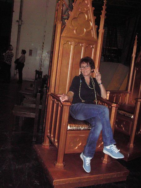 Einmal im Stadttheater einen Blick hinter die Kulissen werfen zu können lockte über 40 Jahrgänger und Jahrgängerinnen nach St. Gallen. In zwei Gruppen wurden wir von Ruth Willi (Backstage Mangagerin) und Andreas Enzler (Beleuchtungsspezialist) durch das Stadttheater St. Gallen geführt. Das in den 70er-Jahren erbaute Stadttheater bietet den Mitarbeitern keine luxuriösen Räume oder Garderoben und platzt aus allen Nähten. Jeder kleinste Raum ist ausgefüllt mit Kostümen und Requisiten. Die Kulissen werden entsorgt, sobald ein Stück definitiv „beerdigt“, also abgesetzt ist, um Platz für Neues zu schaffen. Die Logistik für Kostüme und Requisiten muss bei diesen Platzverhältnissen perfekt sein. Über enge Treppenhäuser besuchen wir alle Abteilungen von der hauseigenen Schneiderei bis zur neu ausgebauten Schreinerei. Möglichst alle Requisiten und Bühnenbilder werden in St. Gallen hergestellt.