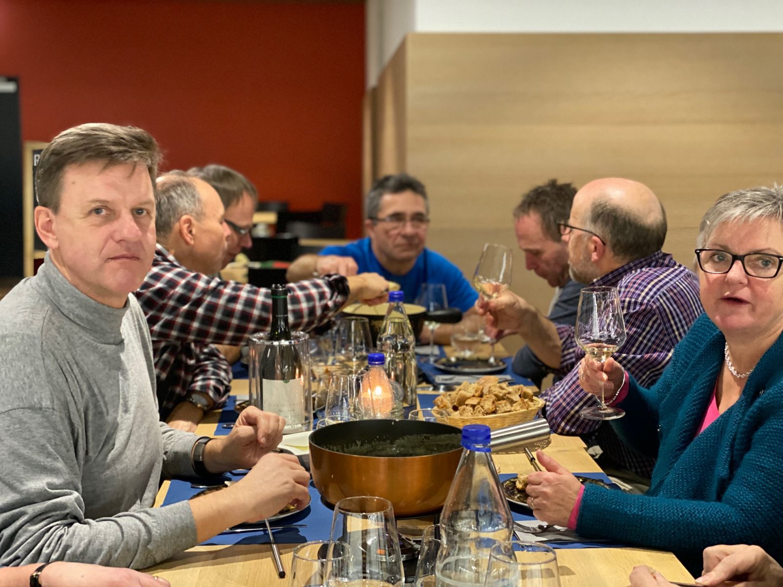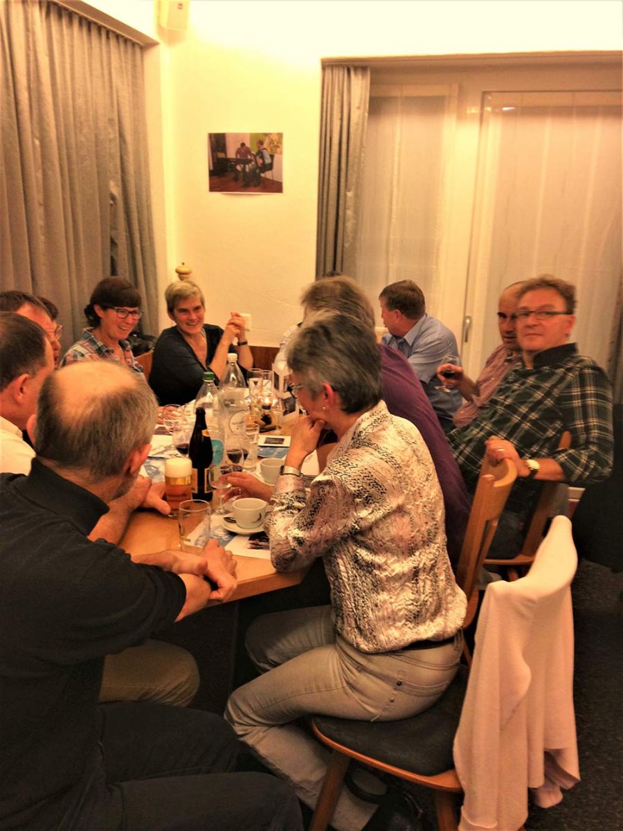 Nach den interessanten und auch teilweise besinnlichen Momenten im Kloster fand ein reger Meinungsaustausch beim gemütlichen Apéro im Lokal statt. Dank Thomas und Stefan konnte nach dem Abendessen im Restaurant Rank sogar noch getanzt werden. Herzlichen Dank für euren Einsatz. Wann die letzten Jahrgänger den Heimweg fanden, bleibt ebenso geheimnisvoll wie das Leben im Kloster!