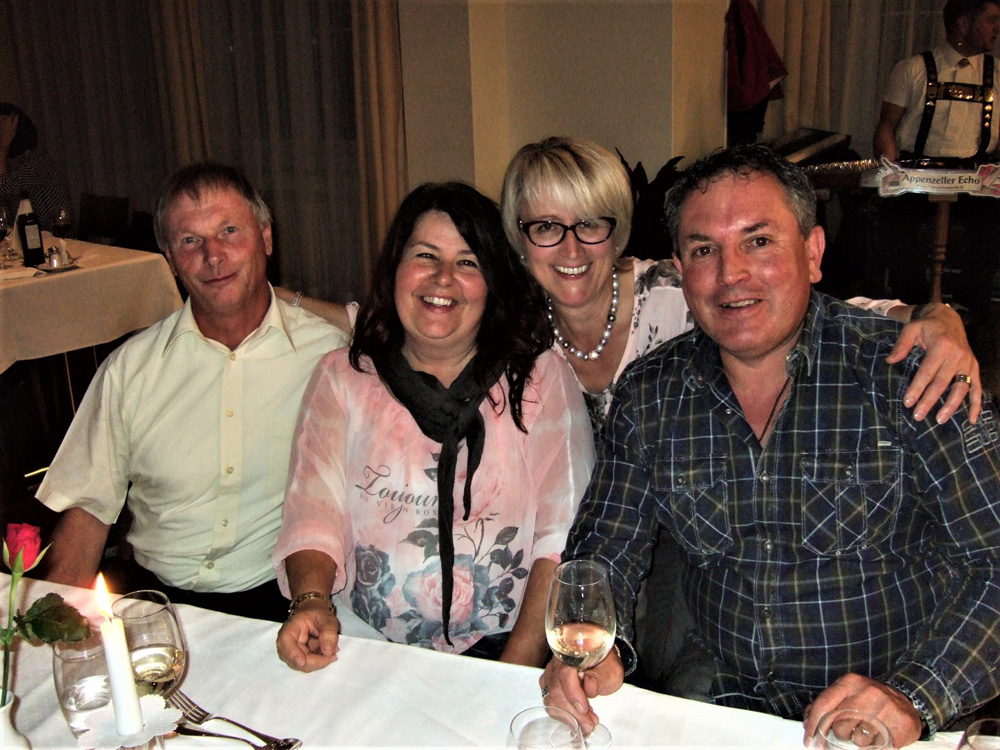 Im Restaurant Hof in Appenzell wartete ein feines Raclette auf hungrige Gäste. Der Turbo Racletteofen vom Ebenalpe Thomas & Priska kam zum Einsatz. Alles lief wie am "Schnürchen", der Service hervorragend, das Essen exzellent und die Stimmung sensationell. Für die musikalische Unterhaltung sorgten unsere Jahrgänger Mälli`s Sepp, de Ebenalp Thomas und Rosalia Miotta mit Klavier, Gitarre und Gesang. Wir erfreuten uns an wendigen Tänzer/innen und lieblichem Gesang. Danke Euch herzlich für euer Engagement!