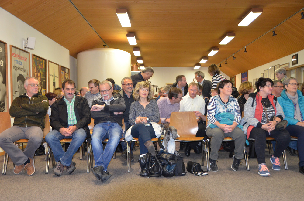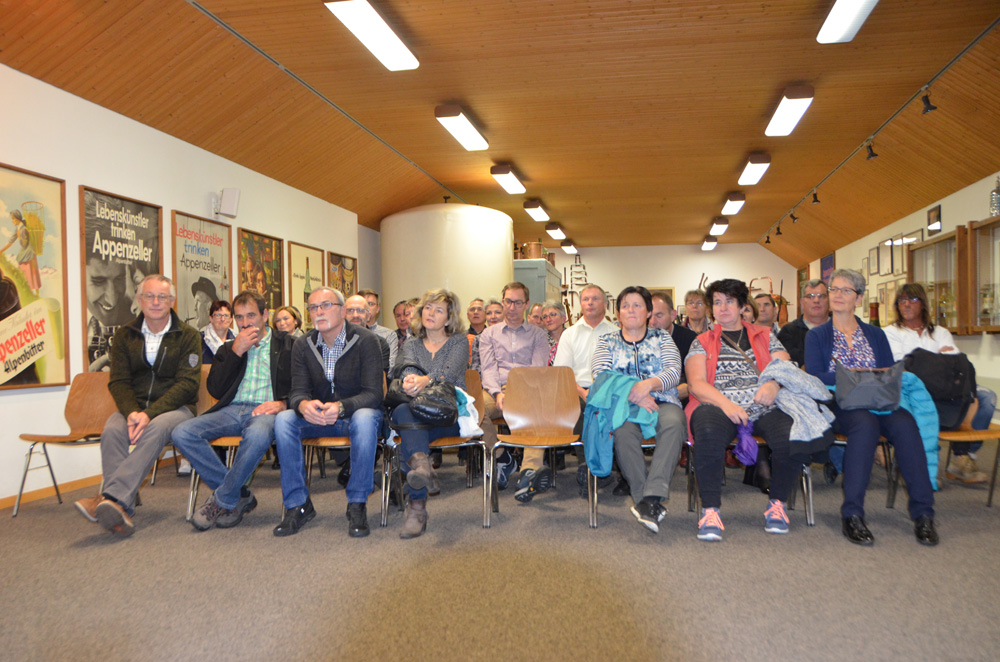 Die meisten der über 70 angemeldeten Mitglieder trafen sich um 16.30h zur Führung bei der Appenzeller Alpenbitter AG. Liegt es am Gedächtnis oder sehen wir uns einfach zu selten? Es wäre doch so viel einfacher, könnte man einen diskreten Blick auf ein Namenstäfeli werfen, habe ich da und dort gehört. Dies als kleiner Tip an den nächsten Vorstand.