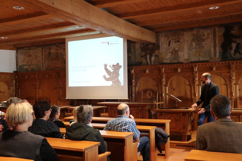 Schon um 14.30 trafen viele Interessierte zum Vortrag zur Appenzeller Handstickerei im Hotel Hecht ein. Unsere Präsidentin und Handstickerin Verena führte uns in die Geschichte und in das Handwerk der Appenzeller Handstickerinnen ein. Danach konnten die Jahrgänger je nach Lust und Laune wählen und entweder im Grossratssaal aus dem Vortrag "Das Jahr 1962" von Landesarchivar Sandro Frefel vieles Interessantes erfahren oder das Museum mit der Sonderausstellung "Gflickt" besuchen. Vor allem der berühmte "Flicksock" dürfte bei einigen alte Geschichten und Erinnerungen hervor gerufen haben. Ab 17.00 besammelten wir uns unter den Rathausbögen zum Apéro mit feinem Gebäck, welches grosszügig von unserem Jahrgänger Walter Motzer offeriert wurde. Um 19.00 fanden wir uns wieder im Hotel Hecht ein. Dort wurden wir von Pfarrer Hidber empfangen, der auf witzige Art ein paar Worte an uns 60-Jährige richtete. Um 19.30 konnte Verena die ordentliche HV eröffnen. Alle Abstimmungen wurden angenommen und mit Rita Inauen (Präsidentin), Rita Manser, Rosmarie Koster, Franz Sutter und Sepp Manser ist der Vorstand für die nächsten 5 Jahre wieder neu besetzt. Wir gratulieren den neu Gewählten, wünschen ihnen viel Spass und sind gespannt auf ihre neuen Ideen.