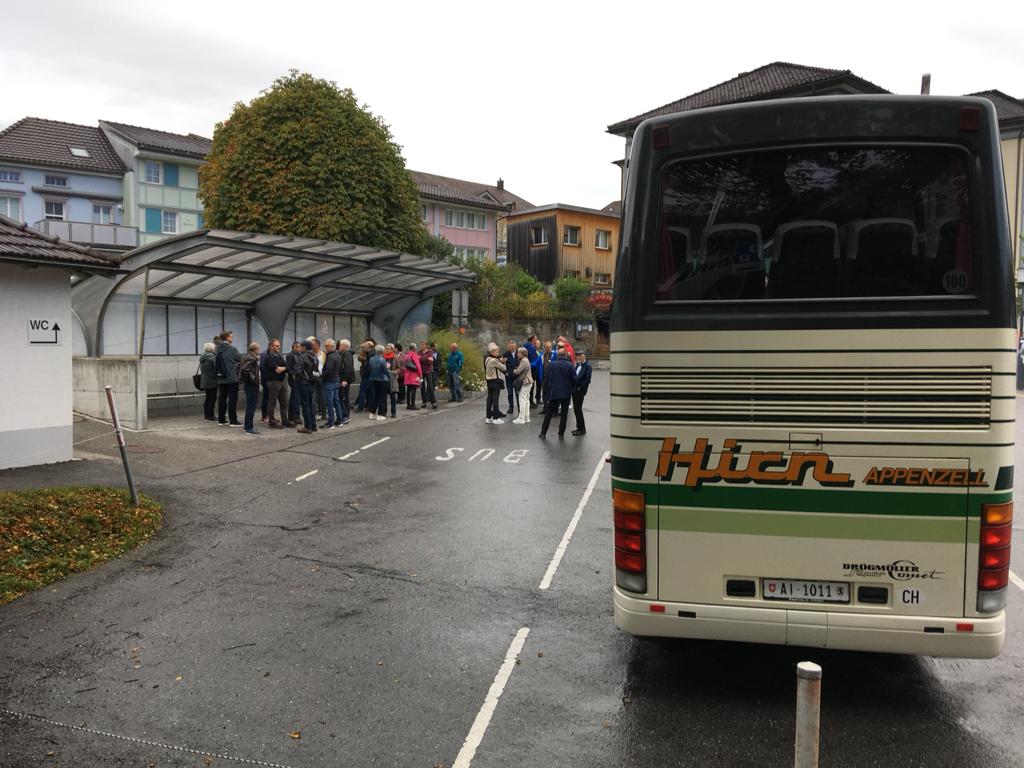 Pünktlich versammelten wir uns auf dem Brauereiplatz. Nach einen frischen Sandwich fuhren wir los mit Hirn Carreisen. Der erste Halt hiess Rümlang. In Trizzi`s Dorfbeiz erlebten wir zürcherische Gastfreundschaft und herzlicher Service. Das Essen mundete allen hervorragend. Aus lauter Freude am einheitlichen Menu "ohne Extras" offerierte uns die Wirtin das Dessert. Weiter gings nach Dielsdorf ins GREEN. Das ist der interessante Arbeitsplatz von Mällis Sepp, unserem Vorstandsmitglied. Er führte uns souverän und mit Fachwissen durch den Betrieb und beeindruckte uns mit äusserst interessanten Details. An dieser Stelle nochmals ein herzliches vergölt`s Gott! Auf dem Bio-Weingut Jäger degustierten wir einheimische Qualitätsweine und für den Hunger wurde ein kaltes Plättli angeboten. Wieder in Appenzell angekommen, zog es einige in die Gass 17 für einen "Schlumi. "Der Vorstand ist der Meinung, der Ausflug war ein voller Erfolg.